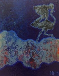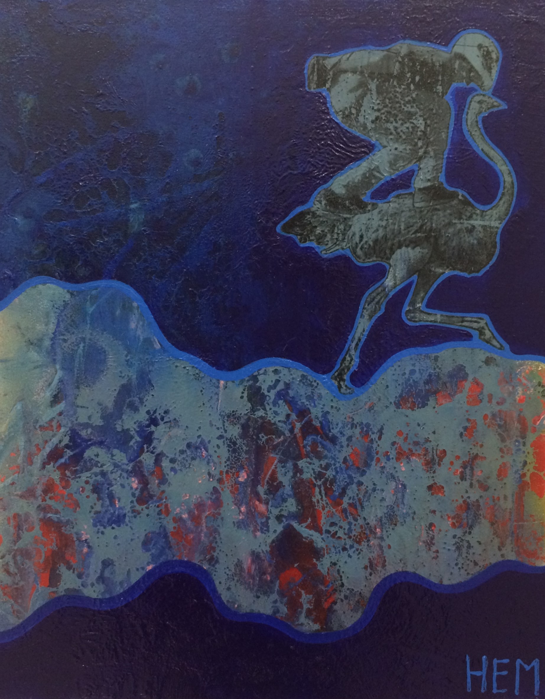 »Autruche-Hem-2 », HEM, 16 »X20 », Acrylique et mixtes