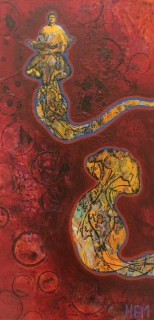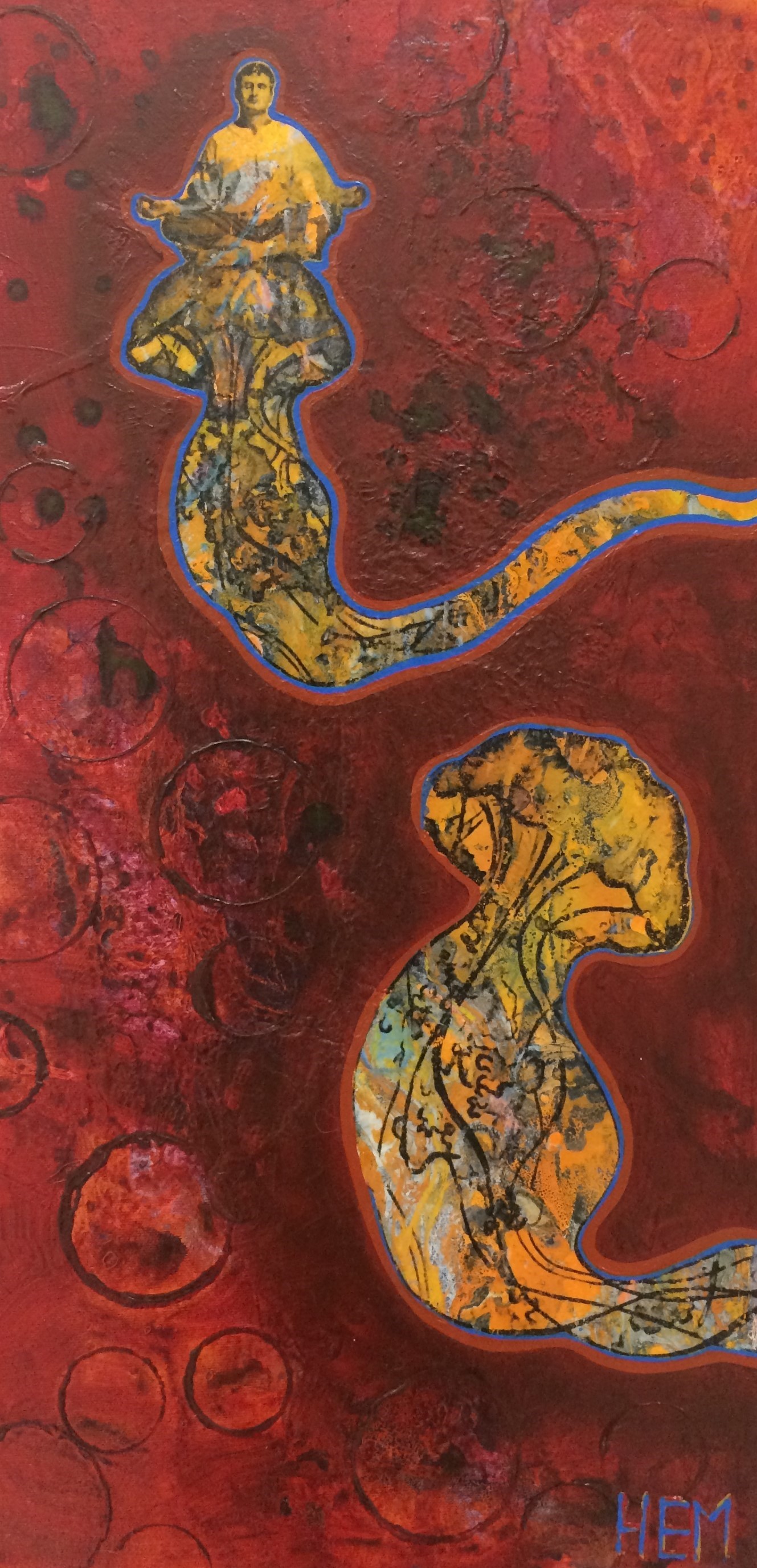 »Médite-méduse-2 »,HEM,12 »X24 », Acrylique et mixtes